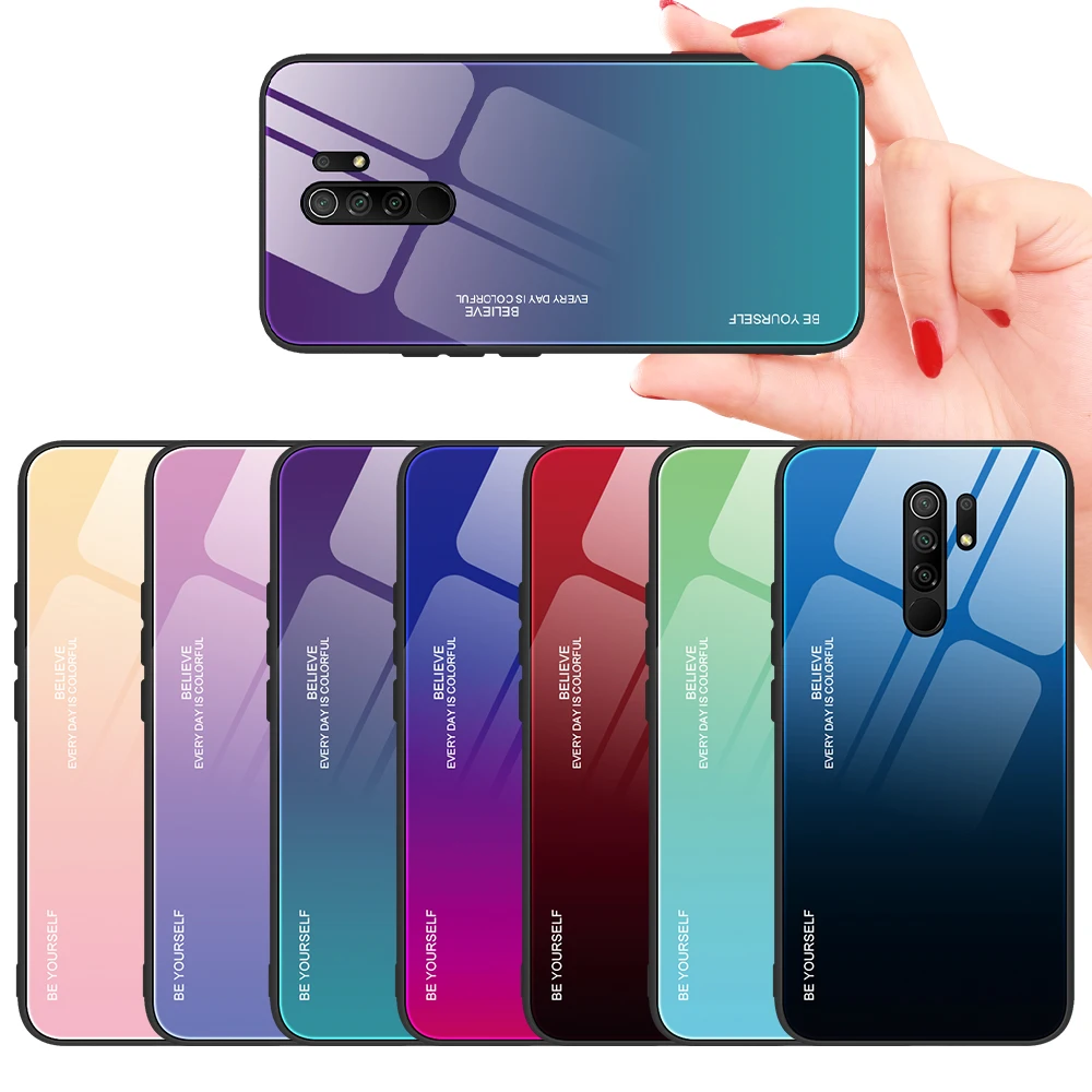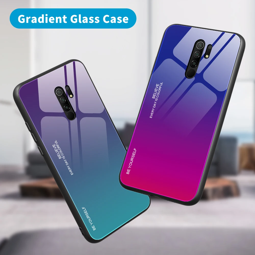 Чехол с градиентным закаленным стеклом для Xiaomi Redmi Note 9 Pro Max Note 9 Pro, чехол для телефона Redmi 9, 9 A, note 9, задняя крышка, чехлы