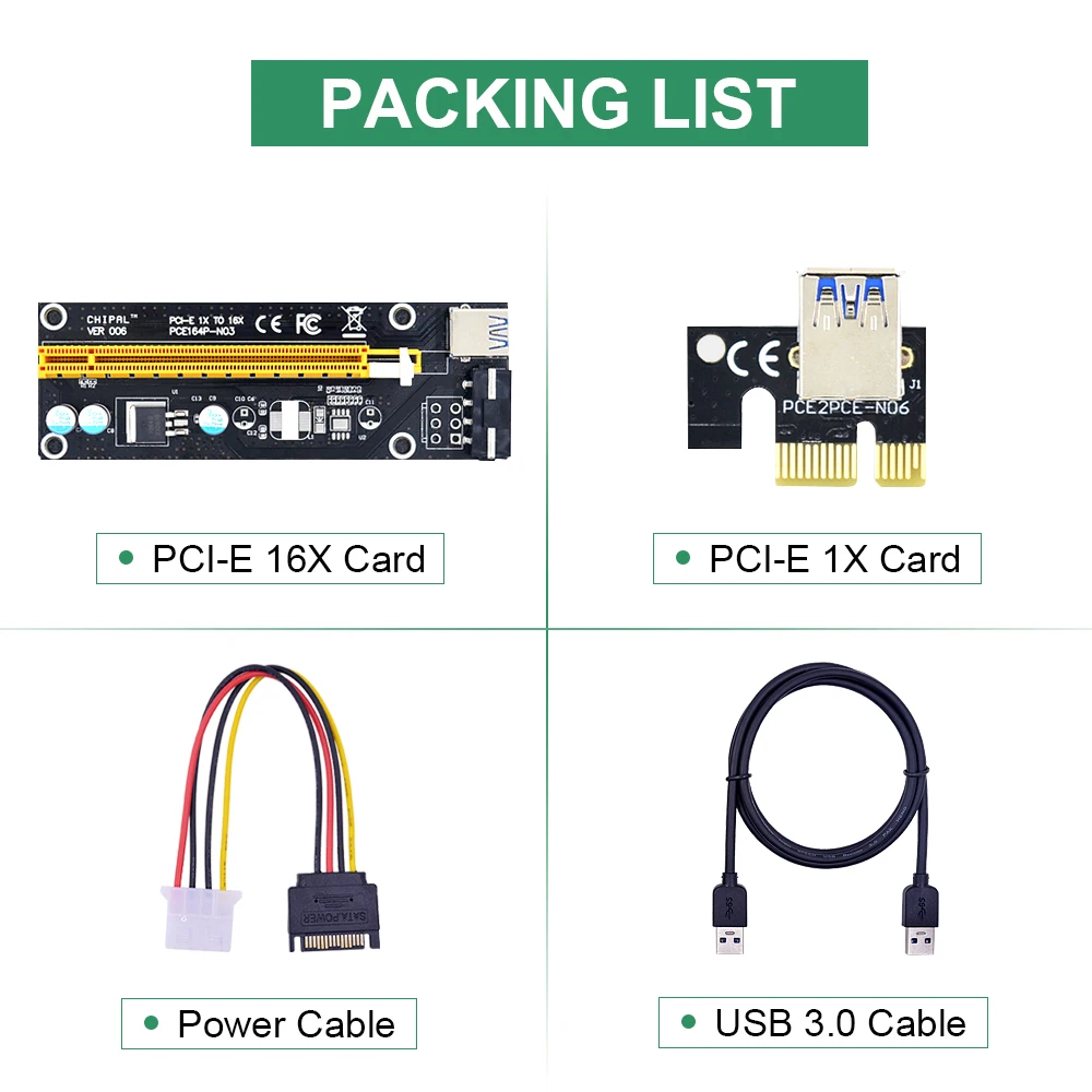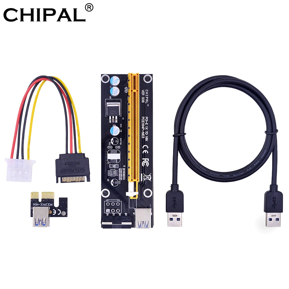 CHIPAL VER006S PCIE PCI-E Райзер-карта PCI Express 1x до 16x расширитель 60 см 100 см USB 3,0 SATA к 4-контактному IDE-адаптеру для видеокарты