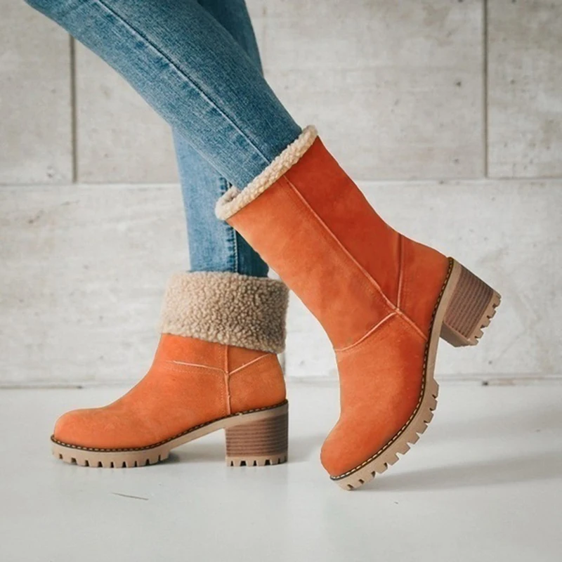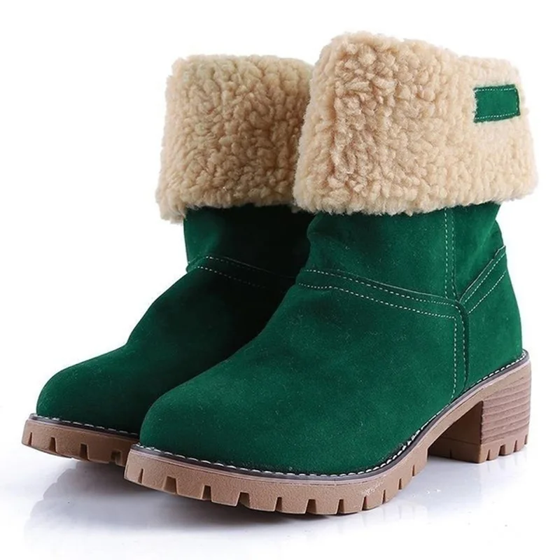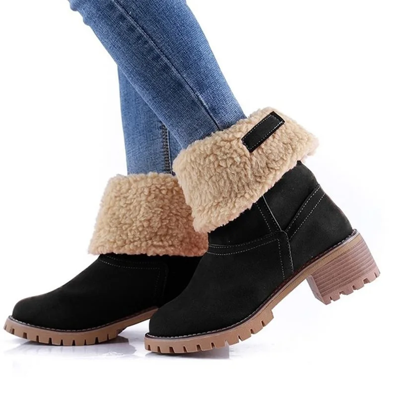 Женские зимние ботинки; Зимние теплые женские ботильоны на не сужающемся книзу массивном каблуке 5 см; Женская модная плюшевая обувь размера плюс