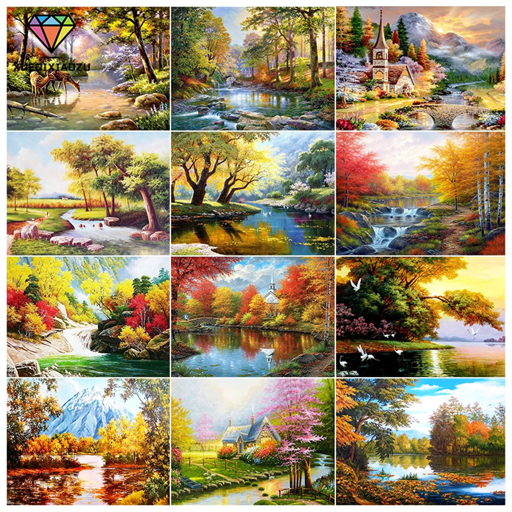 XUEQIXIAOZU 5D пейзаж, алмазная живопись, DIY осенний пейзаж, дерев...