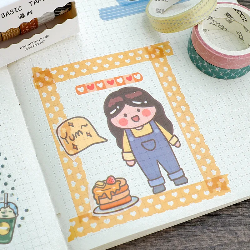 5 рулонов ленты Washi креативный простой узор устойчивый дневник ру...