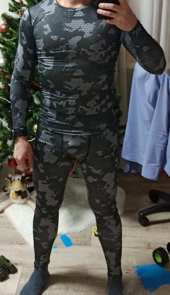 Долго сомневался сколько звезд ставить, но остановился на варианте 4/5/5. Итак: Комплект пришел примерно через 3 недели после заказа. Трек отслеживался. Пошито аккуратно, строчка надежная, принт на ткани хороший. Но! Это термобелье?! Тоненькая полиэстеровая ткань с эластиком. Тепло будет нормально держать при +20 C. При -20, если надеть нижним слоем под одежду, то толку почти не будет. Хозяйство будет отморожено напрочь. Разве что, надевать в три слоя. А для спортивных занятий в теплом помещении подойдет хорошо. Даже мое немаленькое пузо неплохо обтягивает
