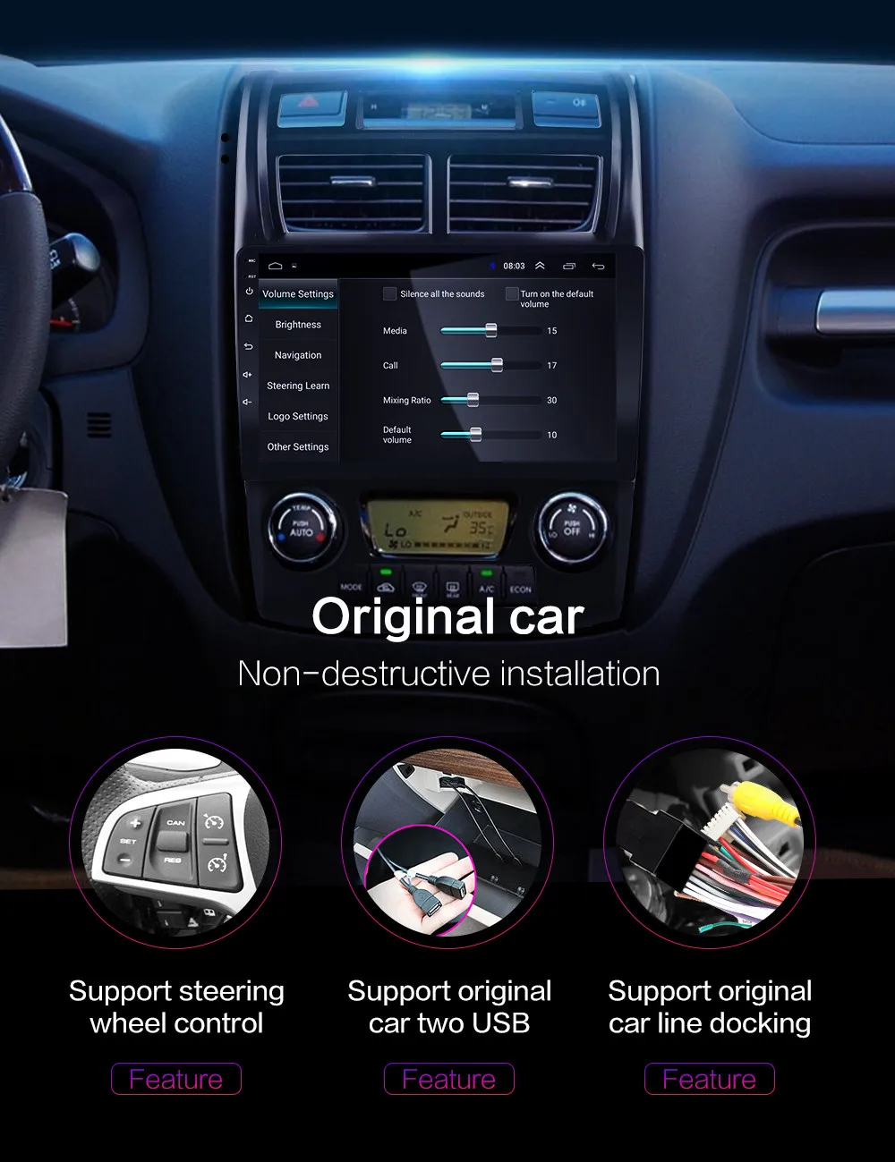 Легко управлять машиной, не отвлекаясь Возможность заказа кнопок рулевого колеса отдельно Поддержка оригинального управления адресами автомобиля Быстрое изменение других функций с помощью кнопки на рулевом колесе для более безопасного вождения
