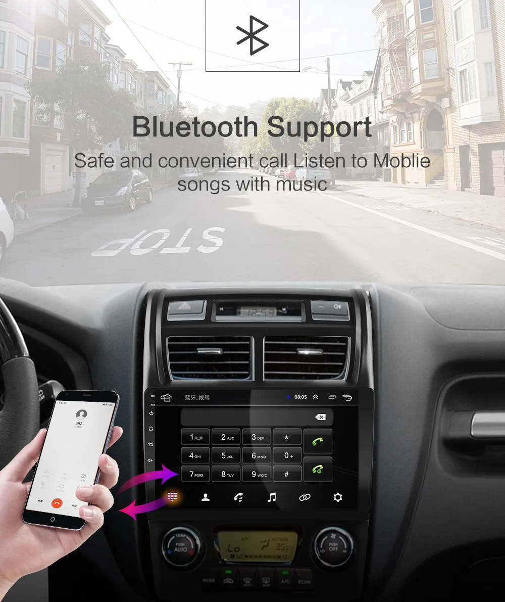 Телефон с голосовой активацией, более удобный для вождения Мобильный телефон Поддержка + Bluetooth музыка (поддержка телефонной книги Bluetooth) Обратите внимание на правильный способ совершения и приема звонков во время вождения. OBDII поддерживает информацию о неисправности проверки автомобиля