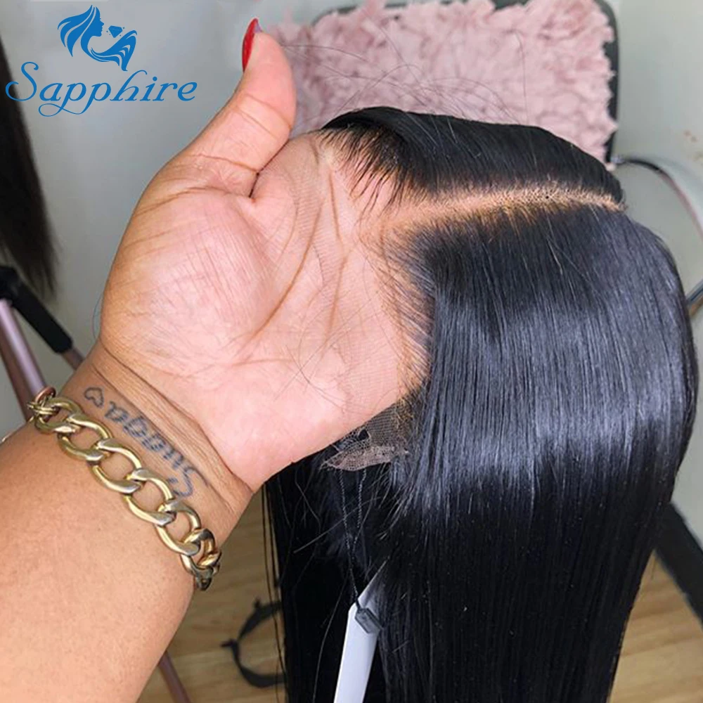 Парики из натуральных волос на шнурках Sapphire 4X4, бразильские прямые парики из натуральных волос