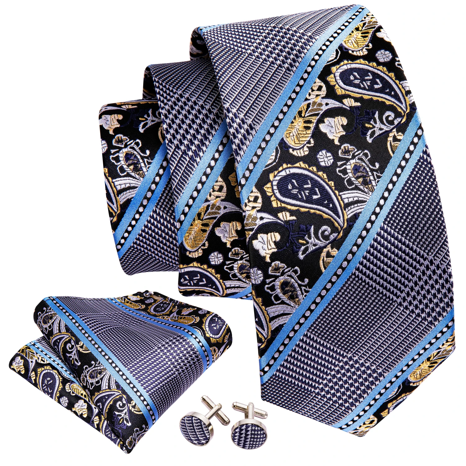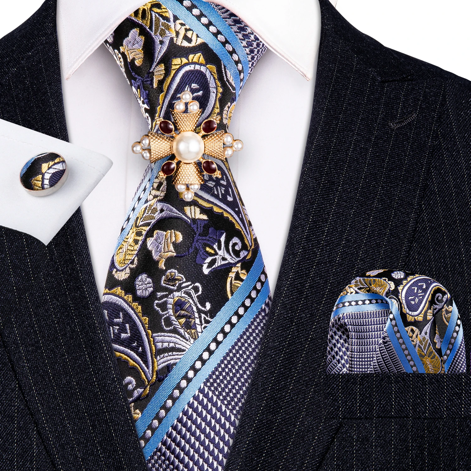 Модные броши синий мужской свадебный галстук пейсли шелковый галстук комплект Hanky Barry.Wang модный дизайнерский галстук для мужчин подарок Вечерние