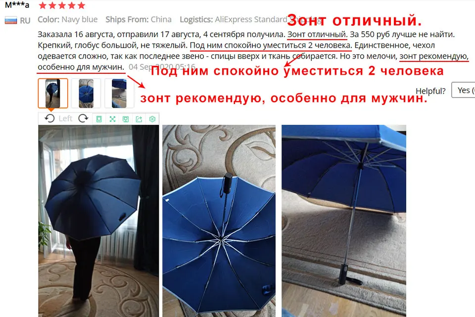 Хороший зонт, немного тяжелый (400 г), но крепкий и большой! Иногда открываются перевернутые и трудно складываются в сумку ..