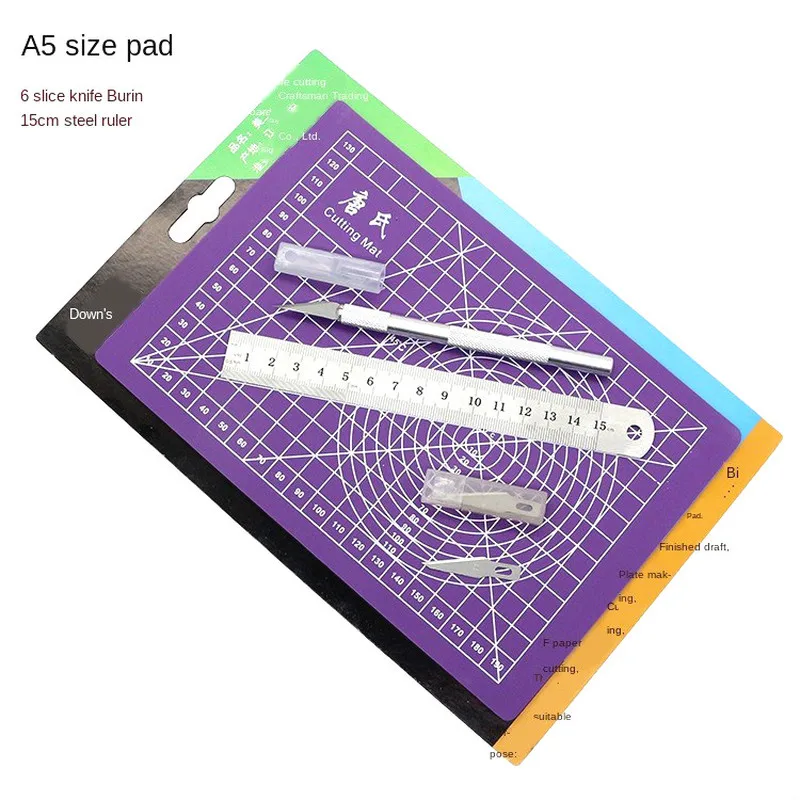 A5 ПВХ ручной набор ковриков для резки, коврик для резки, Лоскутная металлическая линейка, гравировальная ручка, набор ножей, одномасштабная самовосстанавливающаяся разделочная доска