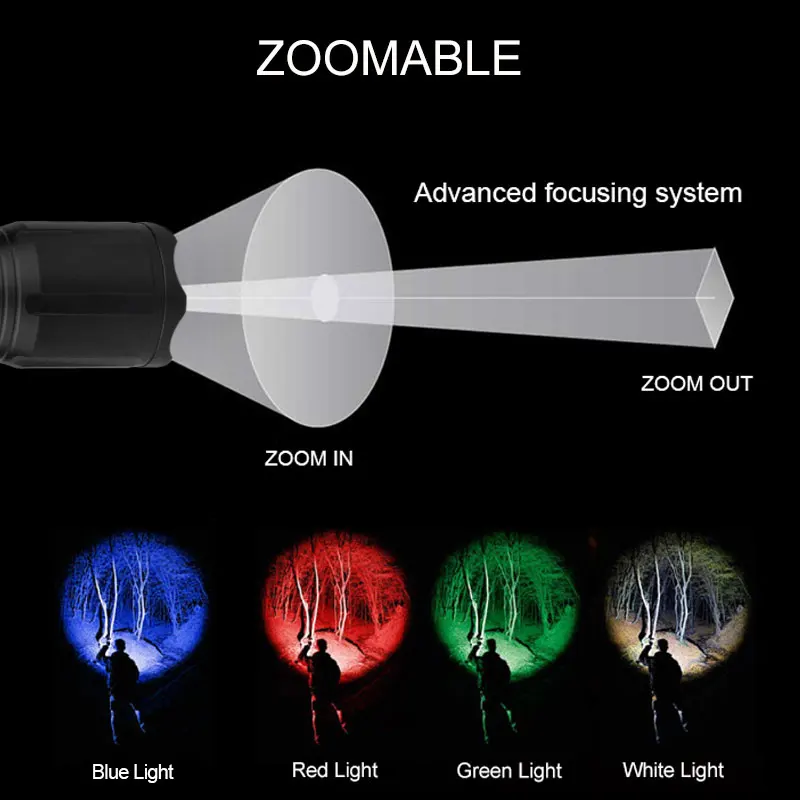 4 цвета в 1, фонарик для охоты и рыбалки, масштабируемый светодиодн...