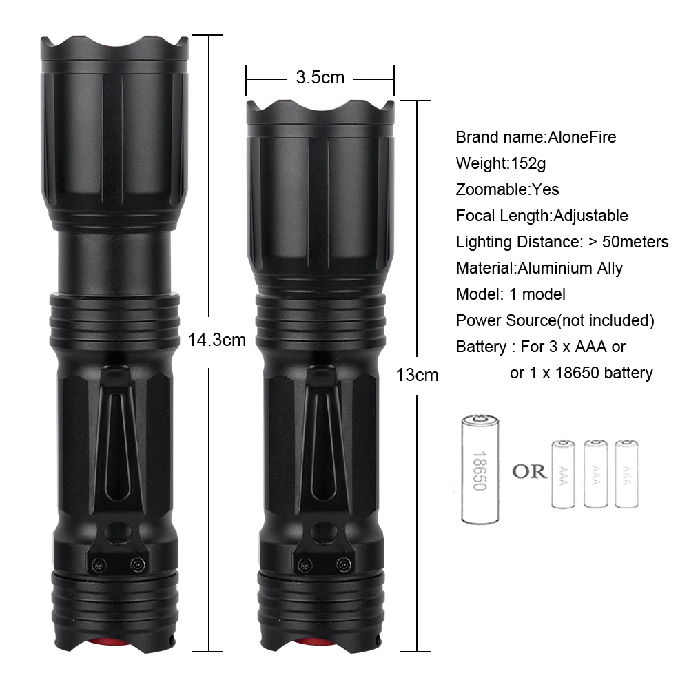 Батарея: для 1x18650 батареи или 3 x AAA батареи