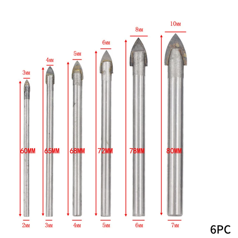 * 6 шт. 3-10 мм треугольное сверло Набор бит для сверления стекла керамический пластиковый фарфор