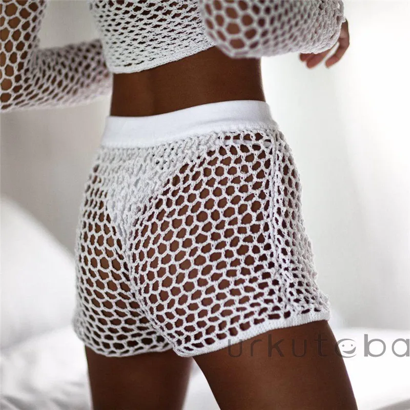 2020 женские вязаные крючком бикини купальник накидка шорты в сеточку Горячие Брюки сексуальная одежда для купания