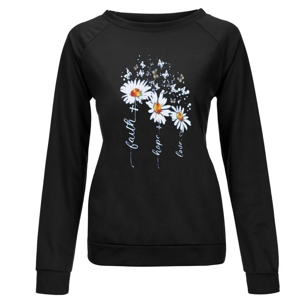 Женская Толстовка Harajuku с принтом Дейзи, перьев, с круглым вырезом, повседневная Осенняя блузка с длинными рукавами, рубашка для подростков, студентов, пуловер, Топ