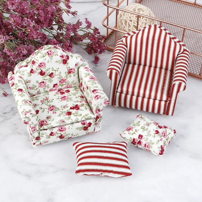 Мини-подушка для дивана с цветочным принтом, модель декора для кукольного домика, реквизит для фотосъемки, миниатюрные декоративные украшения для дома, новинка 112