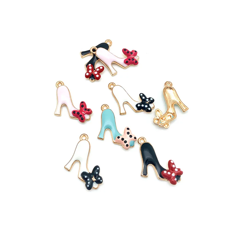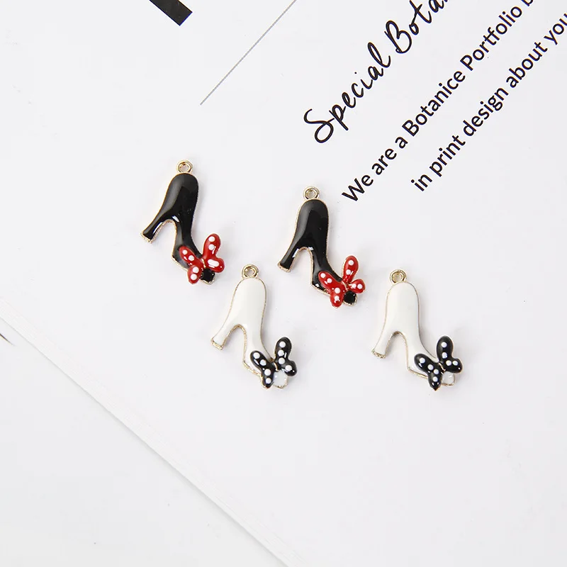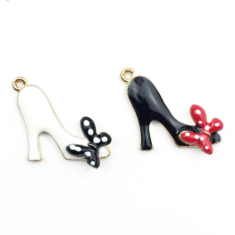 10 шт. с бантом на высоких каблуках; Обувь эмали на высоком каблуке талисманы изготовления ювелирных изделий для женская обувь DIY Подвески Брелок ювелирный XL640