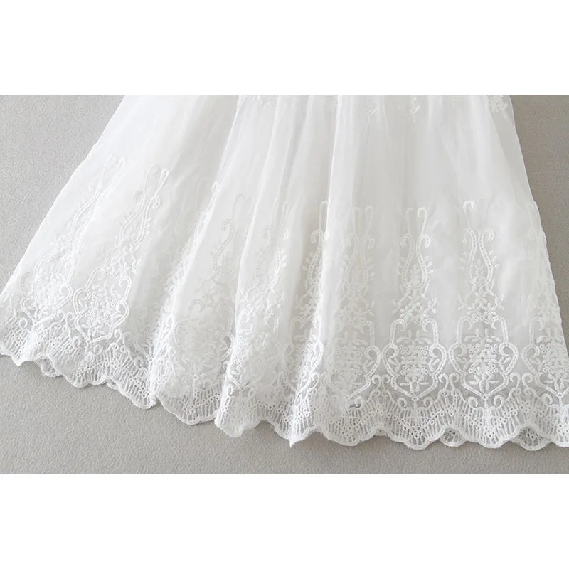 Платье для девочек, однотонное белое, с вышивкой и шляпкой