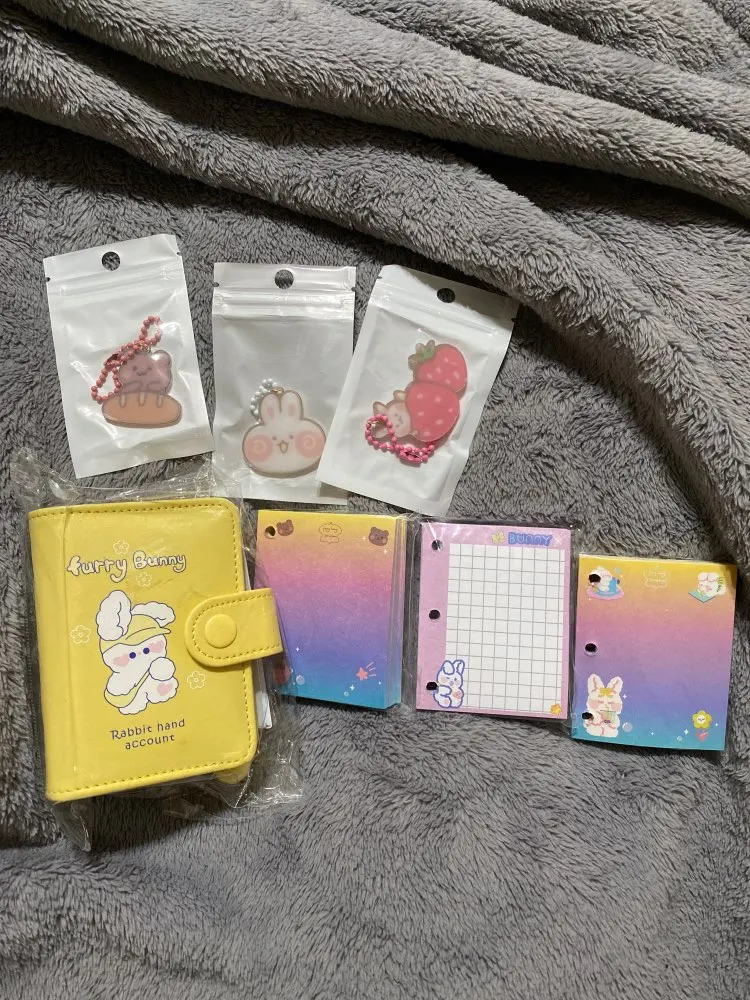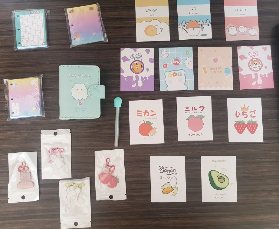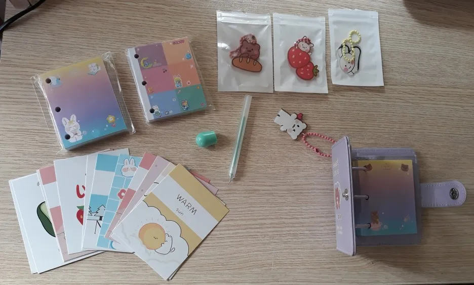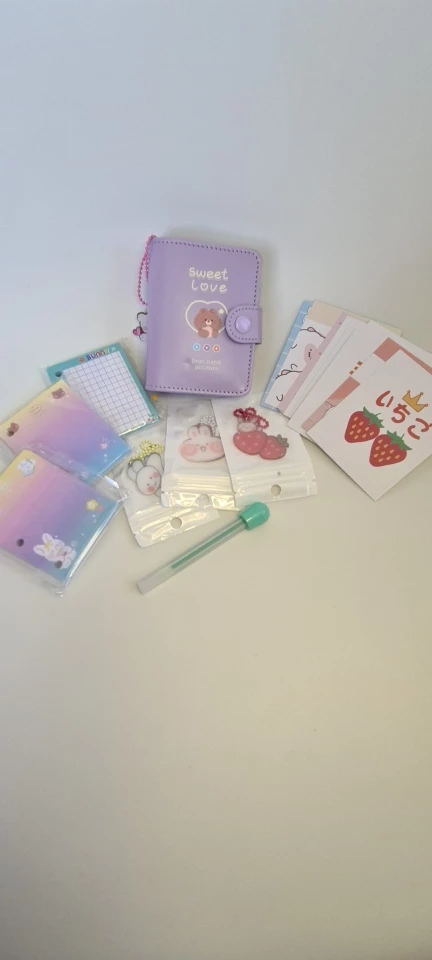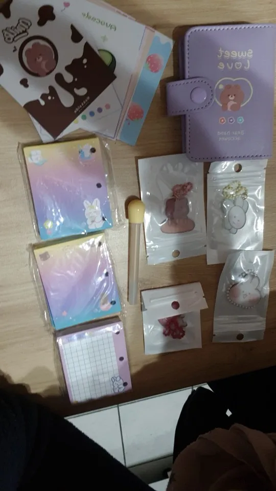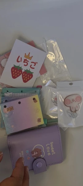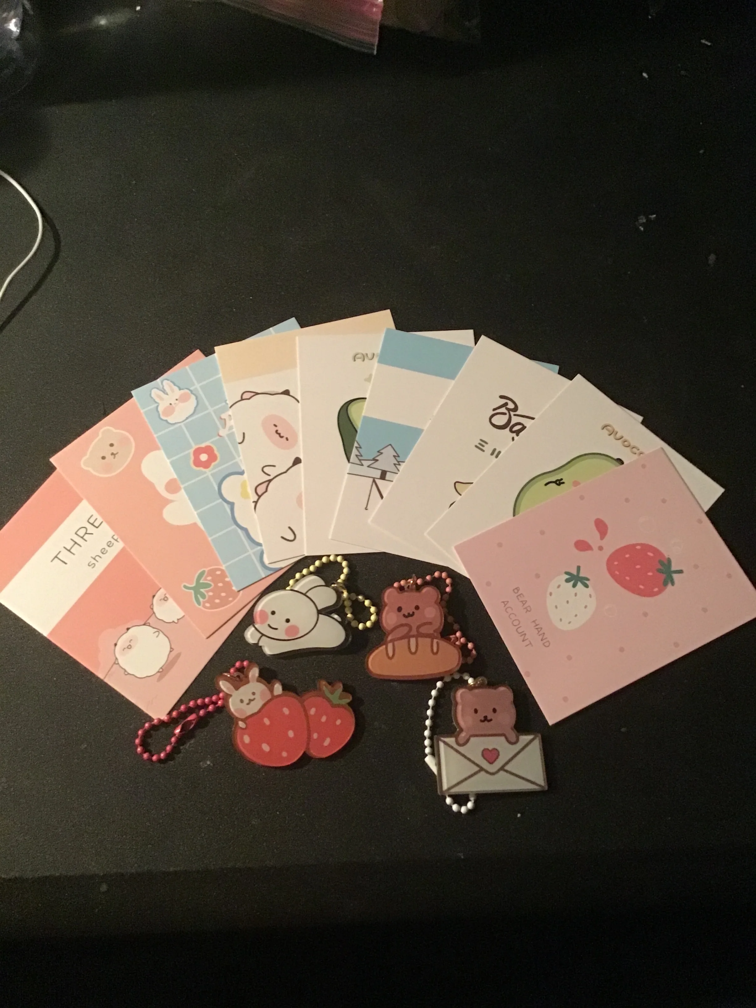 Товары были упакованы хорошо, немного помяли вещи внутри. Я добавляю только 4 характеристики, потому что ремни не очень прочные (железные ремни внутри, которые держат бумагу для заметок вместе), также один из брелков сломан: '(доставка была быстрой!