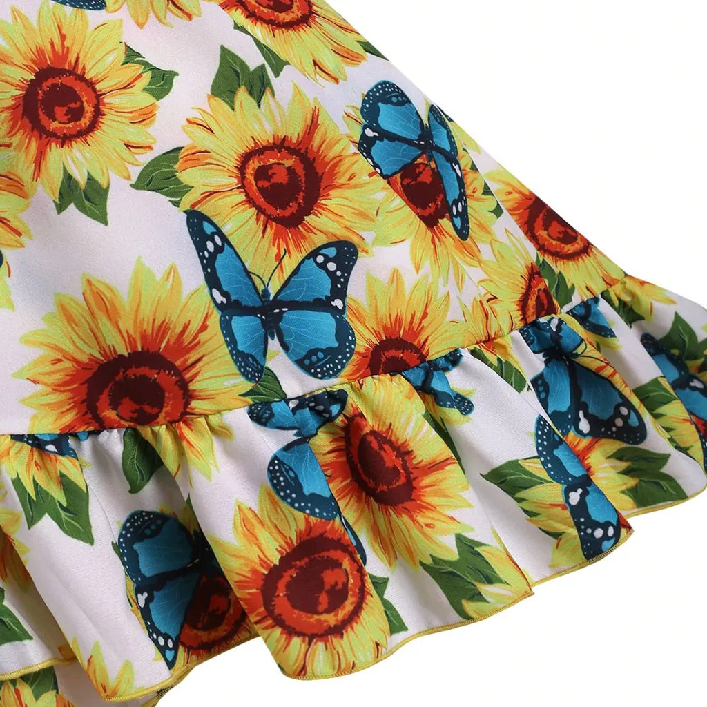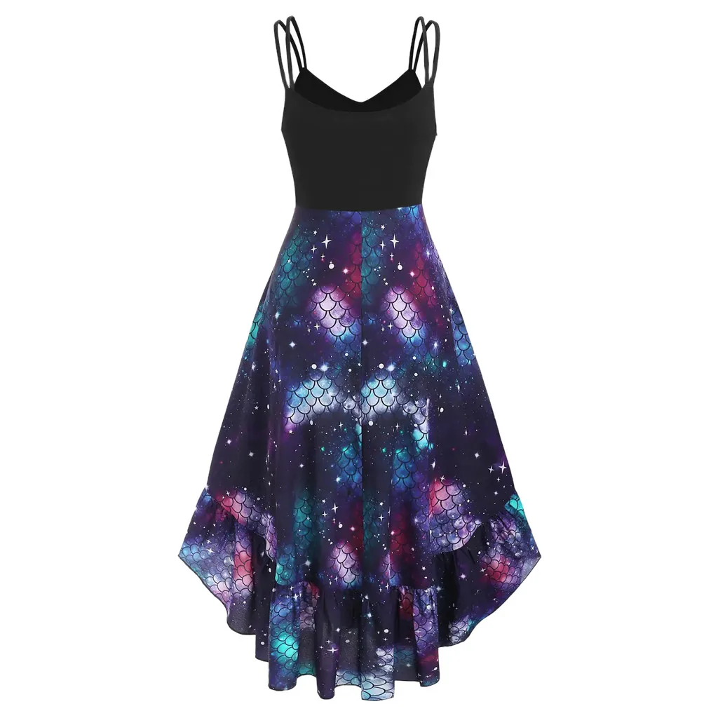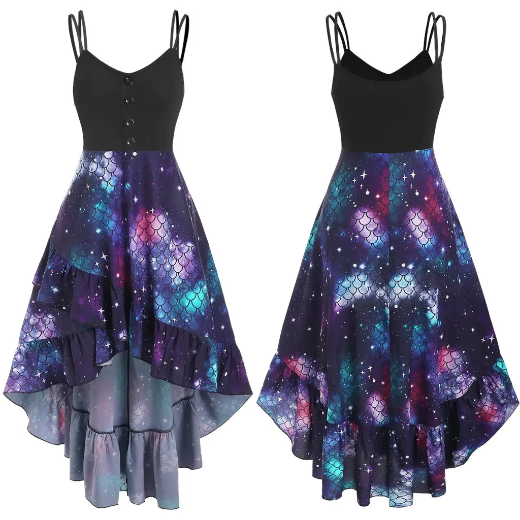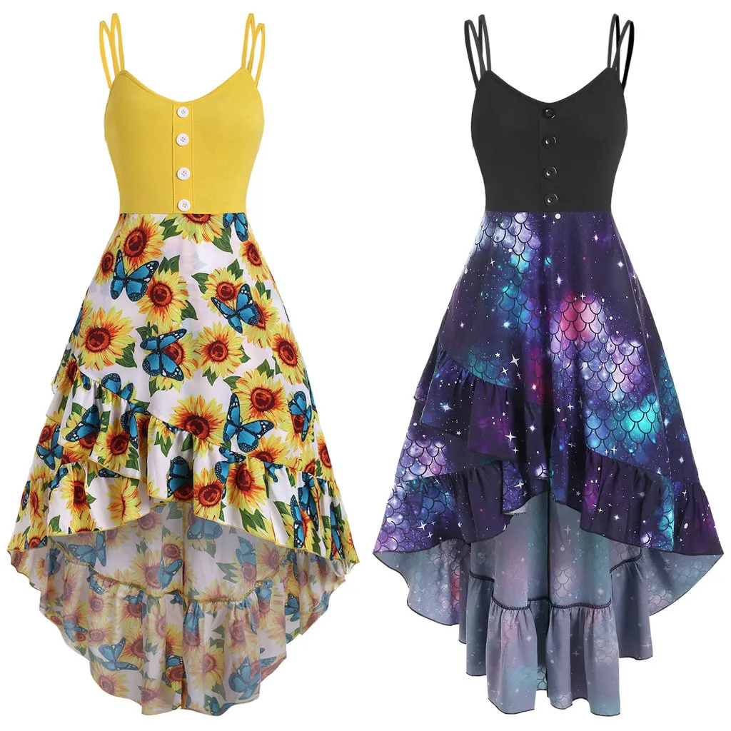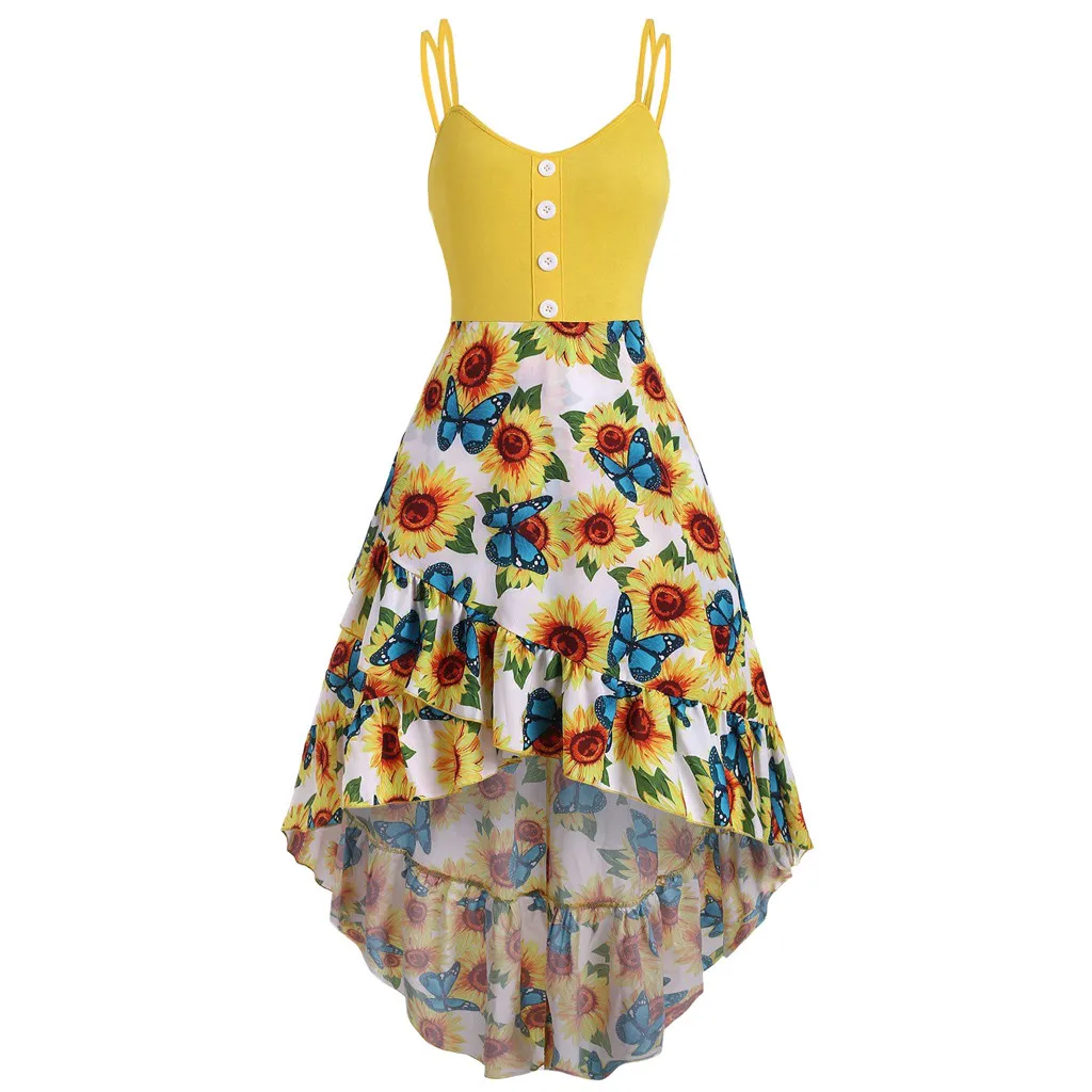 Женское платье на бретельках, Элегантное летнее платье с оборками, пуговицами, принтом в виде подсолнуха, ангела, чешуи, Креста, 2020