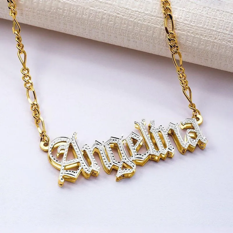 CraftsmanshipPlating Double Plated Gothic Nameplate Necklace