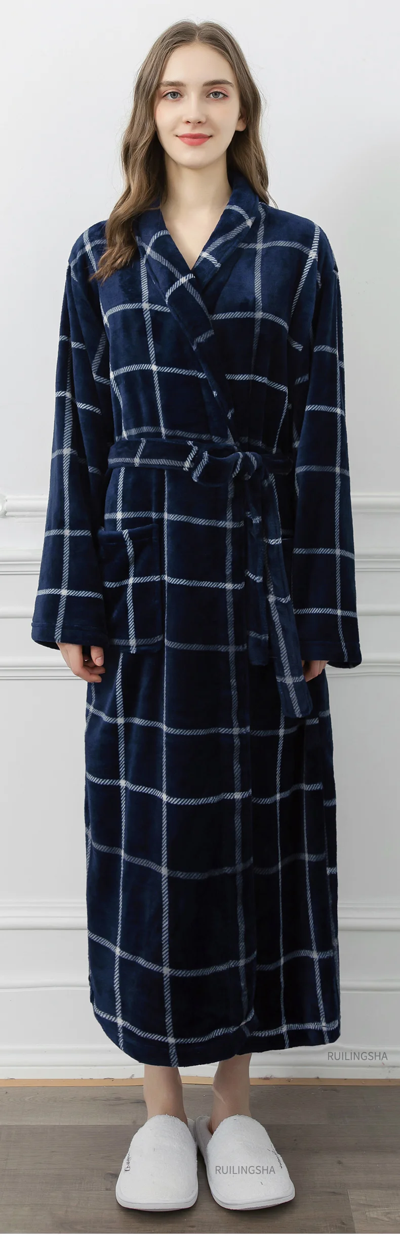 Экстра размера плюс длинный теплый фланелевый Халат для Для женщин мужчин Вес 70-140 кг плед банный халат из кораллового флиса; Домашний халат, одежда для сна