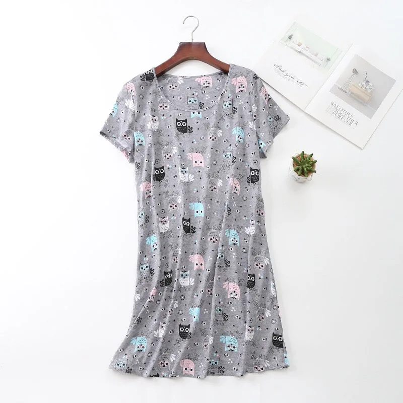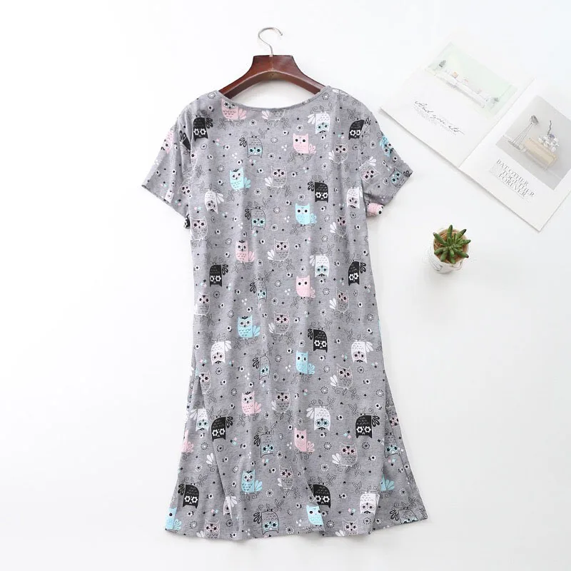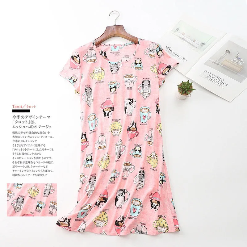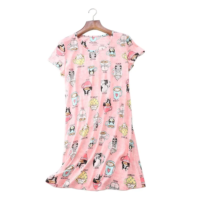 Новинка лета 2020, удобное свободное женское платье для сна с круглым вырезом, женское милое мягкое платье для дома с мультяшным принтом