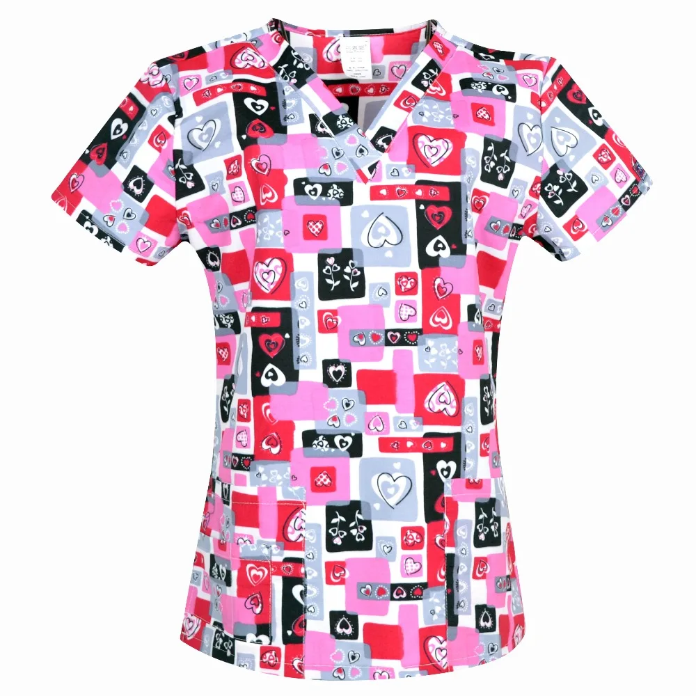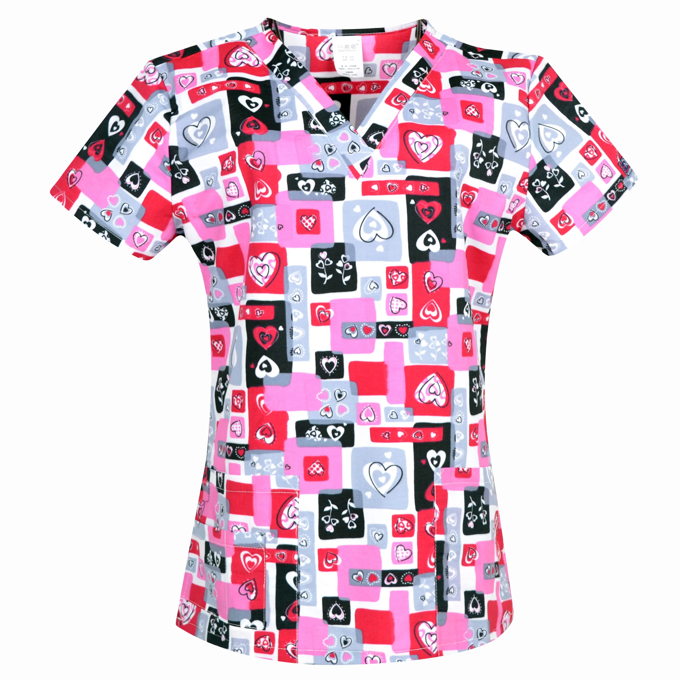 Полиэстер Прекрасный Принт Скраб Униформа для женщин дышащая с v-об...