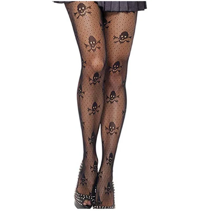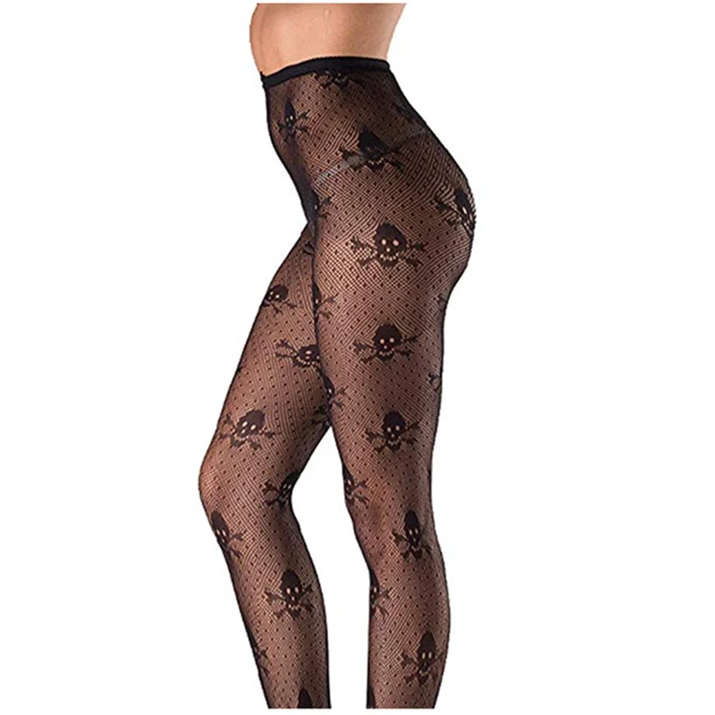 Колготки 2020 модные колготки женские сексуальные черные чулки в сеточку с черепами ночные клубы Хэллоуин с принтом черепа женские чулки-колготки