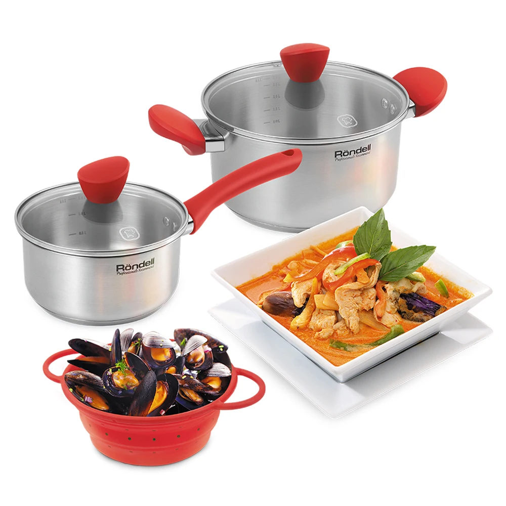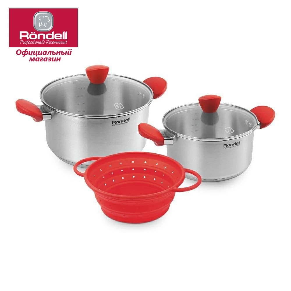 Набор посуды Rondell Breit 1003, 5 предметов (кастрюли с/кр 20 см, 2,8 л/ 24 см, 4,8 л/ силиконовый дуршлаг 21,2 см)
