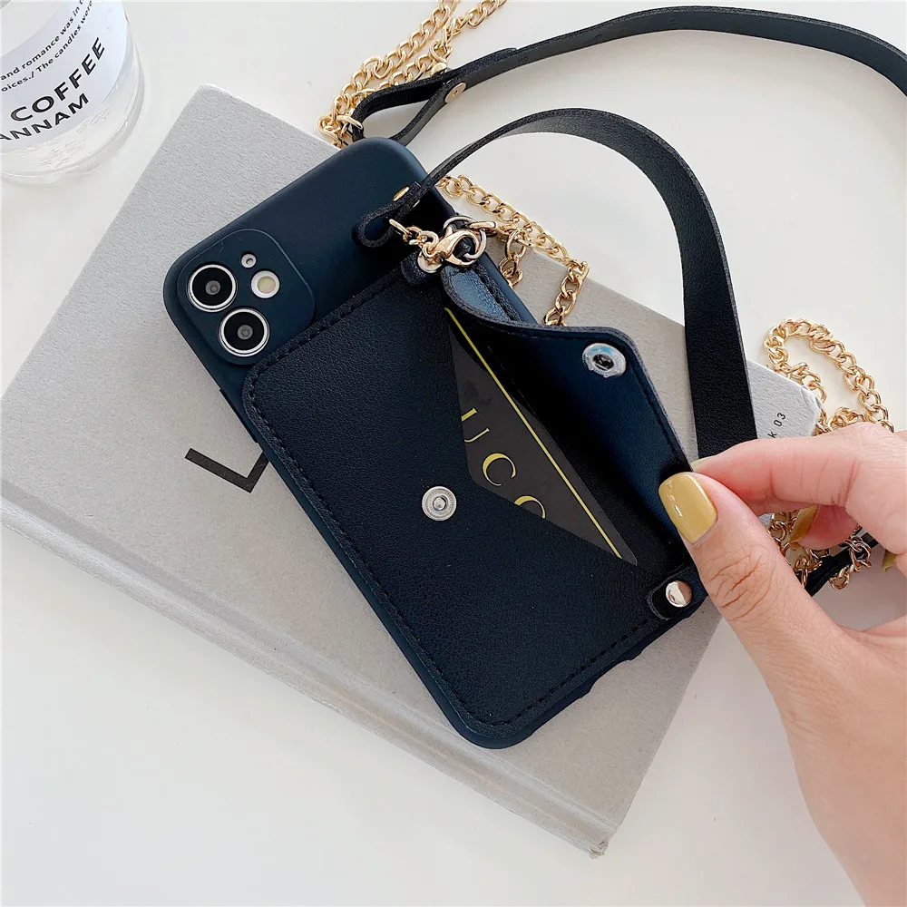 Чехол-кошелек для iPhone 11 Pro Max, SE 2020, XR, X, XS Max, 8, 7, 6S, 6 Plus, мягкий, силиконовый, с длинной цепочкой