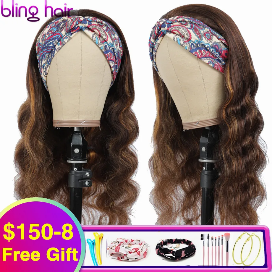 Парик с головной повязкой объемная волна волос парик человеческих в...