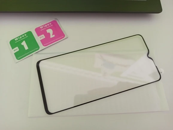 Выглядит хорошим стеклом, в комплекте с салфетками.