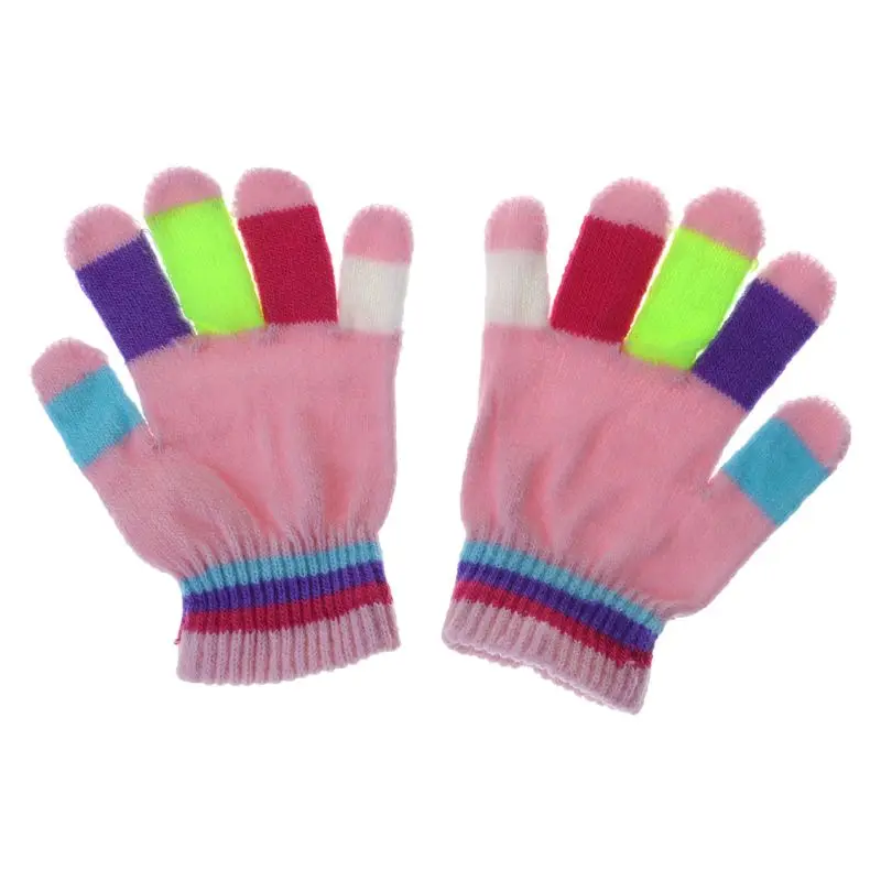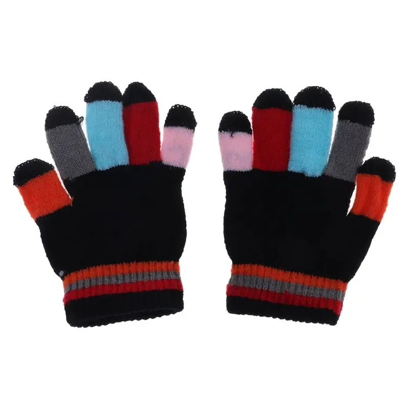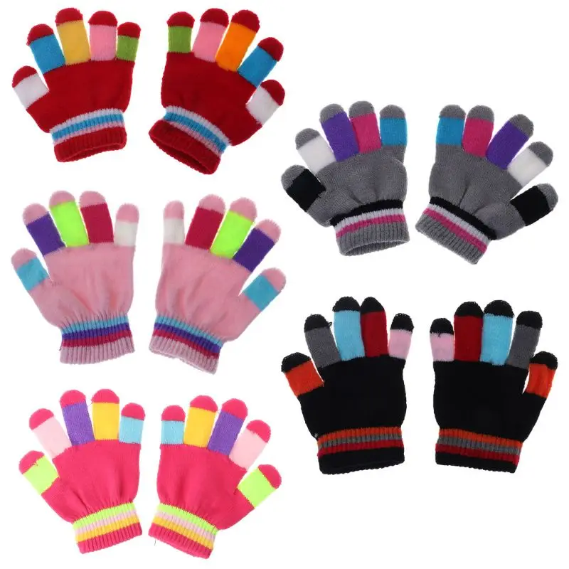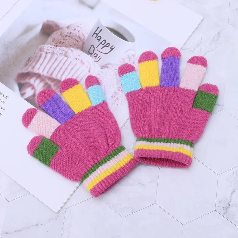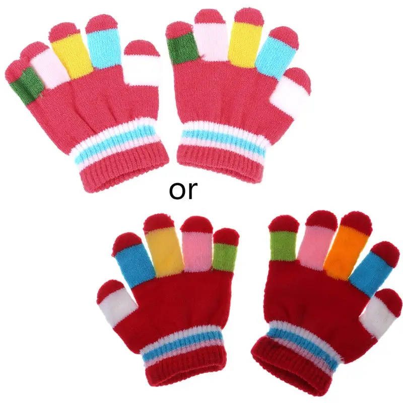 Плюшевые плотные теплые детские перчатки, зимние Бархатные варежки, Детские флисовые полосатые вязаные перчатки с закрытыми пальцами, цветные эластичные