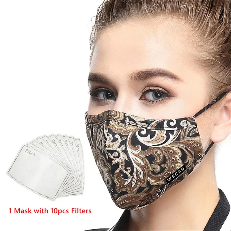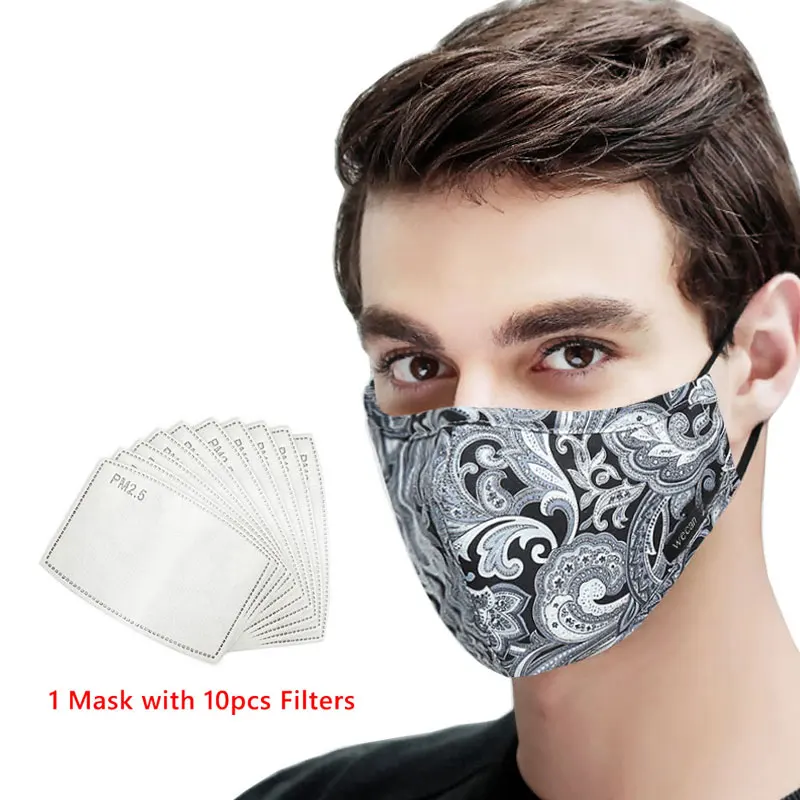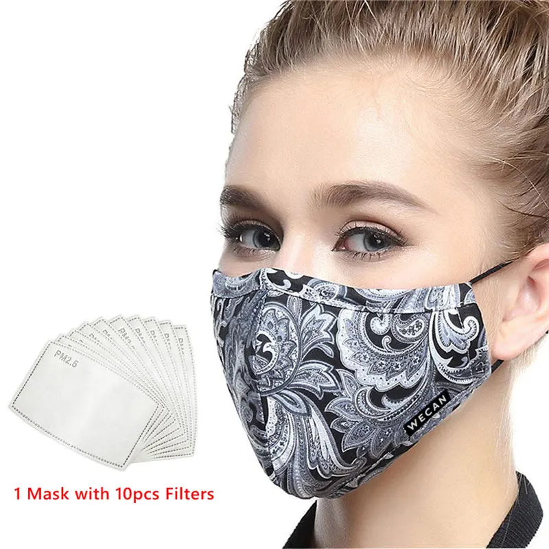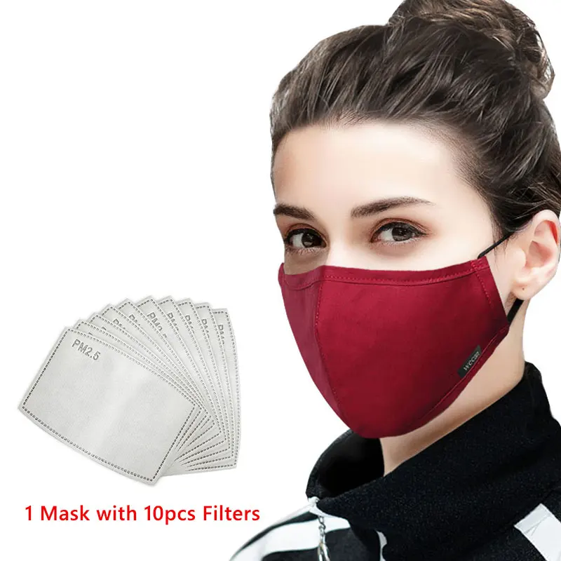 WECAN многоразовая маска для лица черная защита от пыли PM2.5 Крышка для рта mascarillas с 10 шт. фильтр с активированным углем Тканевые Маски