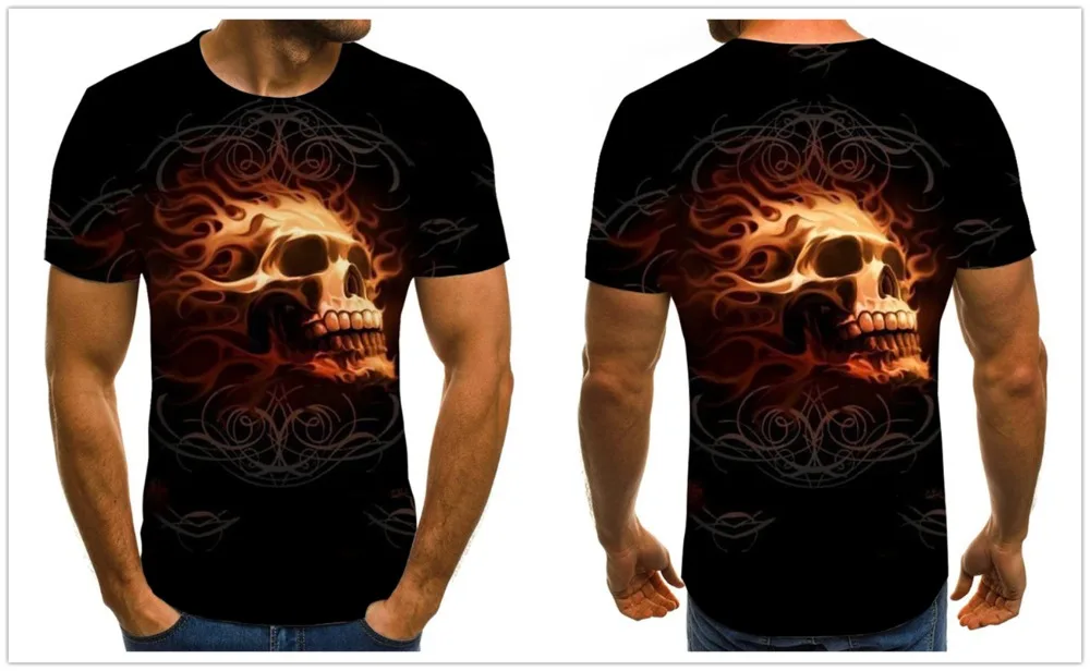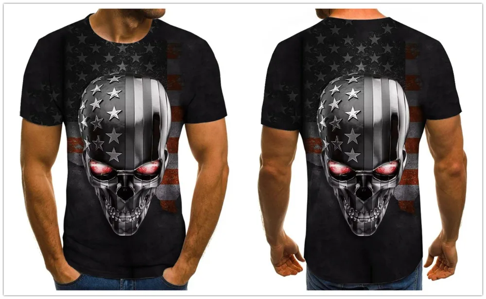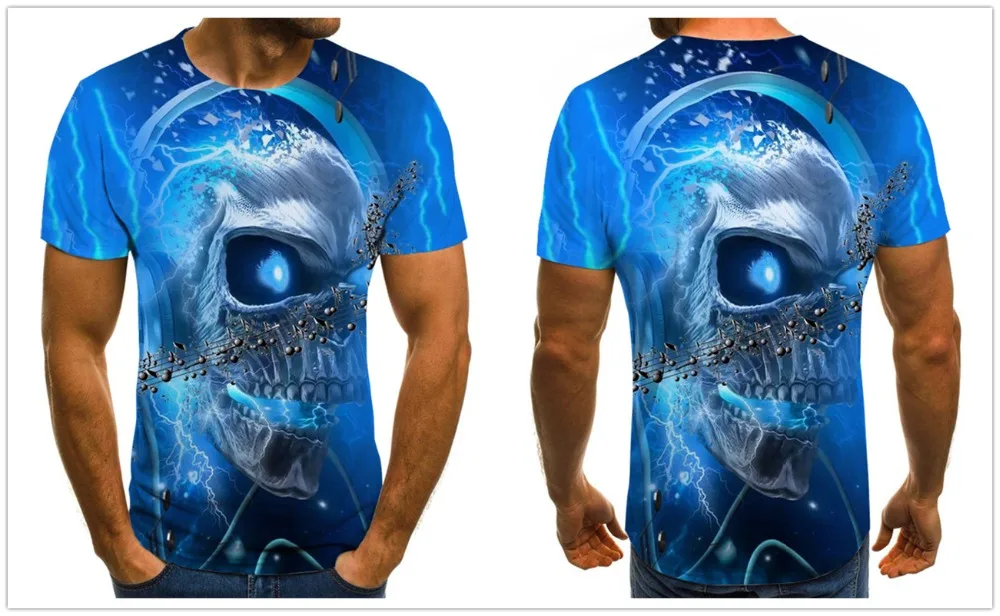 Футболка мужская с 3D-принтом черепа, модная рубашка в стиле панк, ...