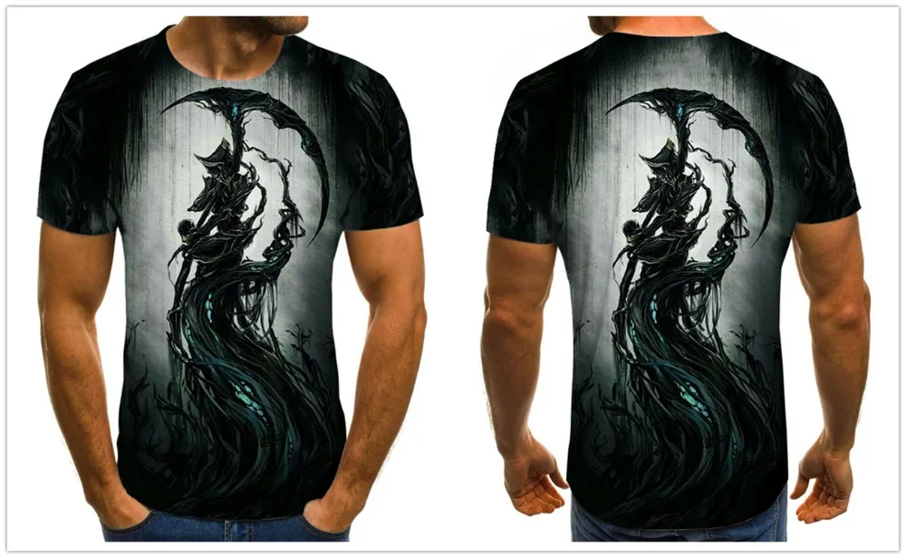 Мужская футболка с принтом черепа Жнеца, мужские футболки с ужасами...