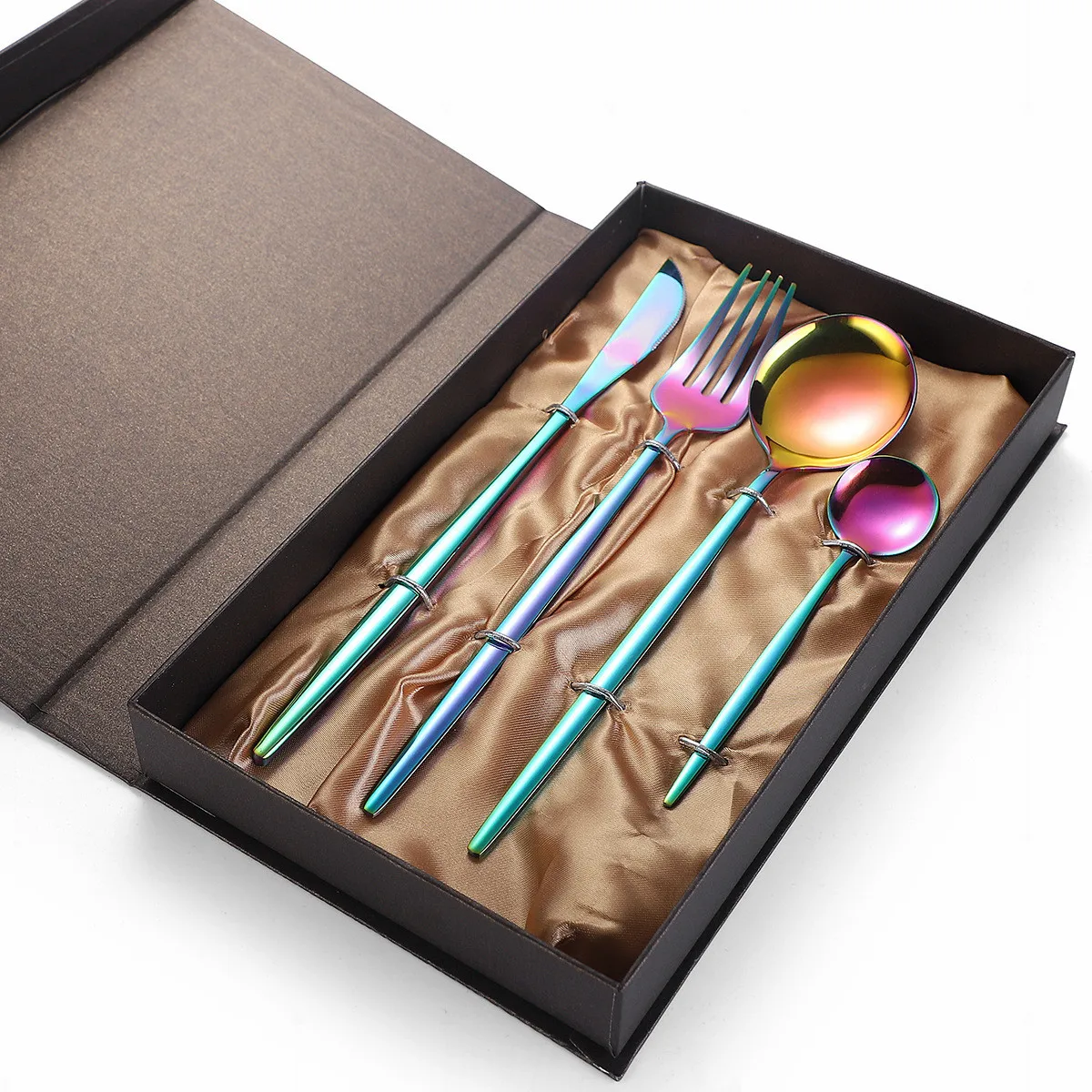 Полный набор посуды из нержавеющей стали черный золотой столовый набор из вилок ложка набор ножей набор столовых приборов коробка набор серебряных изделий столовые приборы экологически чистые