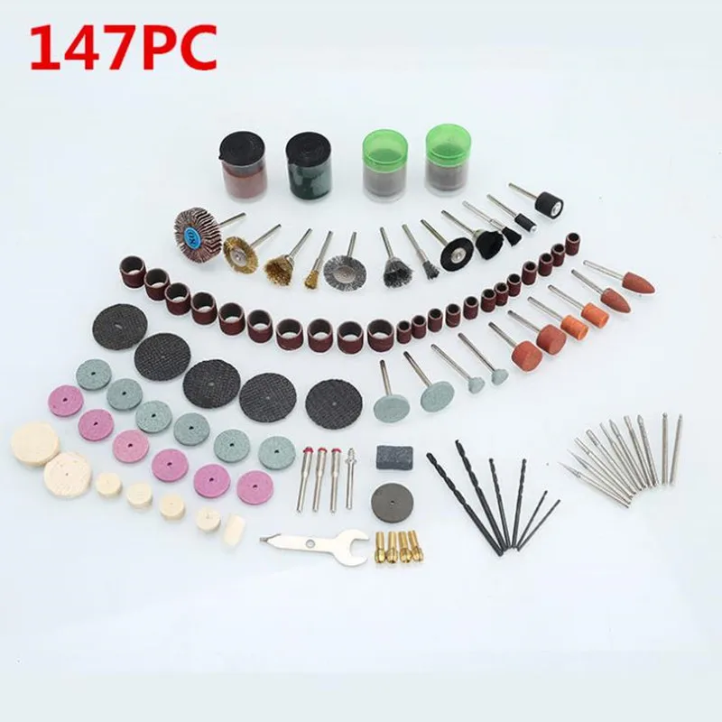 Набор аксессуаров для вращающихся инструментов, 147 шт., хвостовик 18 дюйма, набор аксессуаров для электроинструмента, легкое сверление, пила, шлифовка, полировка