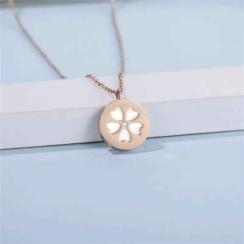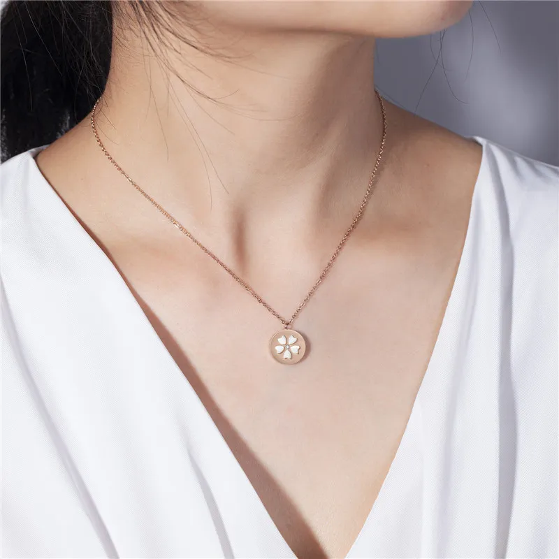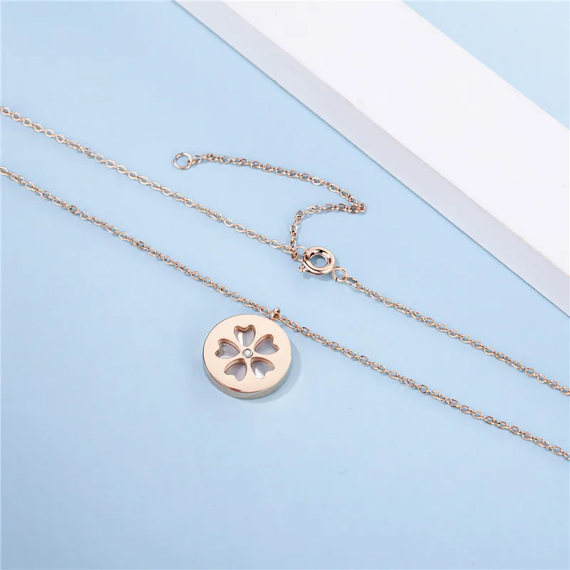 Женское Ожерелье из титановой стали, ожерелье с подвеской в виде цветка вишни, с белыми кристаллами