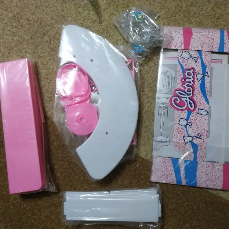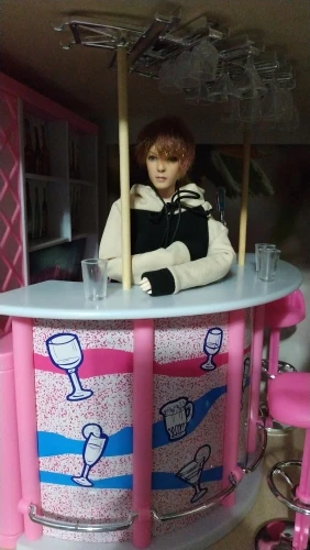 Отличный бар для кукол. Только чтобы вписался в кукло-дом, пришлось поменять две круглых стойки на не столь высокие) Единственное - вместо кружек для пива, заявленных на фото коробки, были стаканы, которые не за что вешать на крючки сбоку. В подарок был купальник - продавец как будто знал, что в доме есть бассейн))
