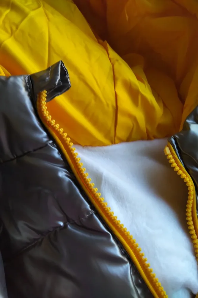 Хорошая курточка на осень ! Классный верхний материал, внутри тонкий флис, в районе рукавов обычная подкладочная ткань. А вот в капюшоне довольно тонкая( жёлтая), дешевенькая ткань. Отправляли очень долго, 2 недели . При том отправили только со второго раза. Но прилетело как обычно за месяц до Молдовы. На рост 104, размер 110 как раз на весну ребёнку ( по рукавам), из-за широкого кроя, больший размер бы прям болтался. У подбородка защита, за это плюсик.