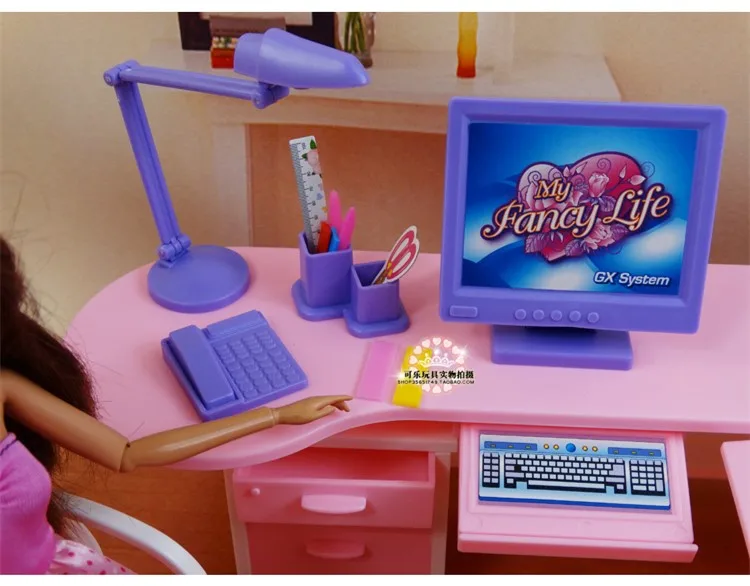 Подлинная принцесса офисная для кукол Барби 16 аксессуары для шарнирных кукол Ящик канцелярские принадлежности Набор лампа дом мебель игрушка подарок