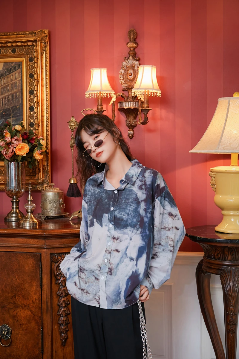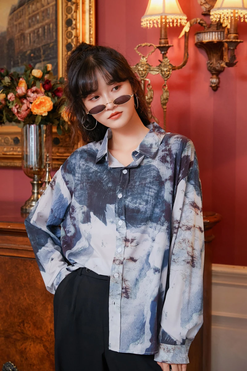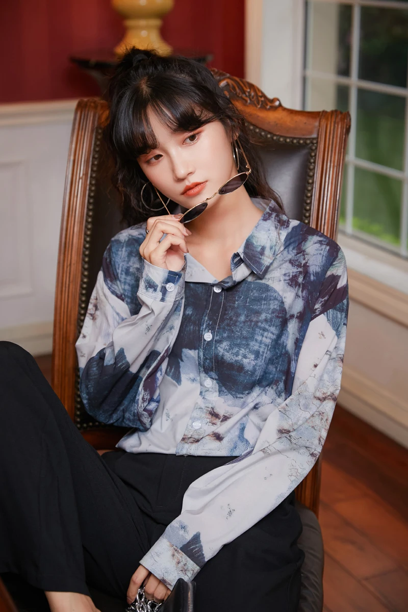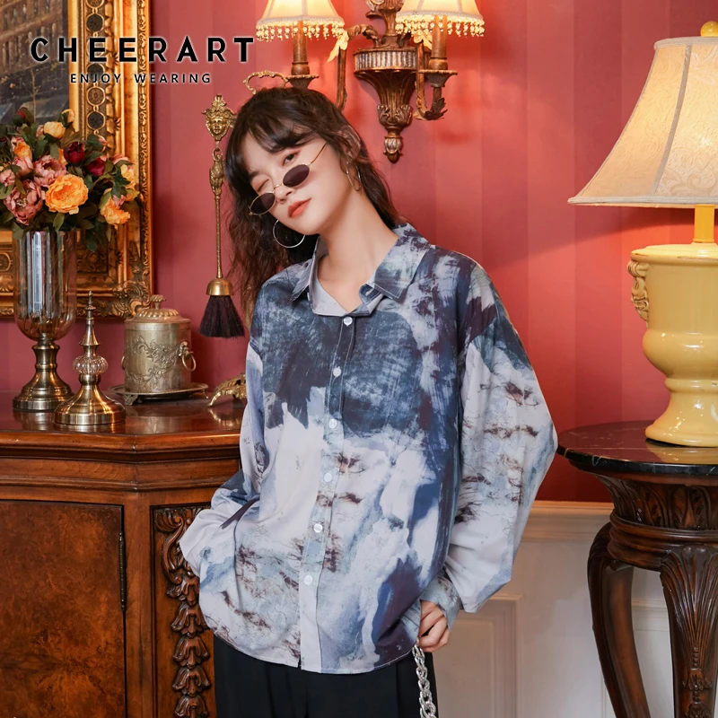 Осень 2020, женская рубашка CHEERART с длинным рукавом, уличная одежда, блузка на пуговицах, воротник с галстуком, свободная рубашка, Женский дизайнерский Топ, одежда