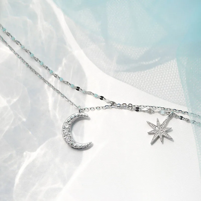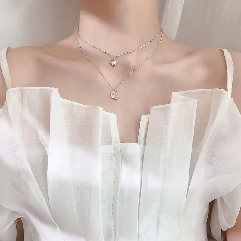 2022 серебряное модное Двухслойное ожерелье со звездой и луной, Жен...