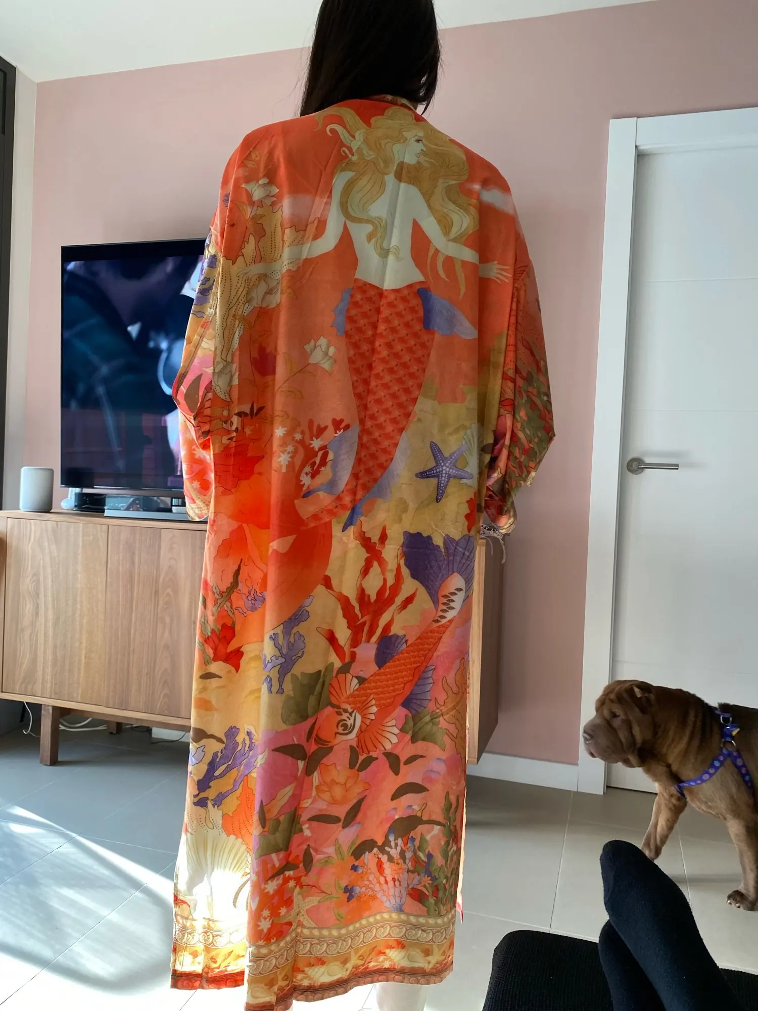 Женское пляжное кимоно с принтом Русалочки Fitshinling, богемное об...