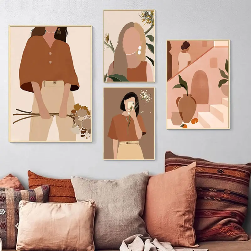 Абстрактная Мода Винтаж девушка искусство холст живопись скандинавс...