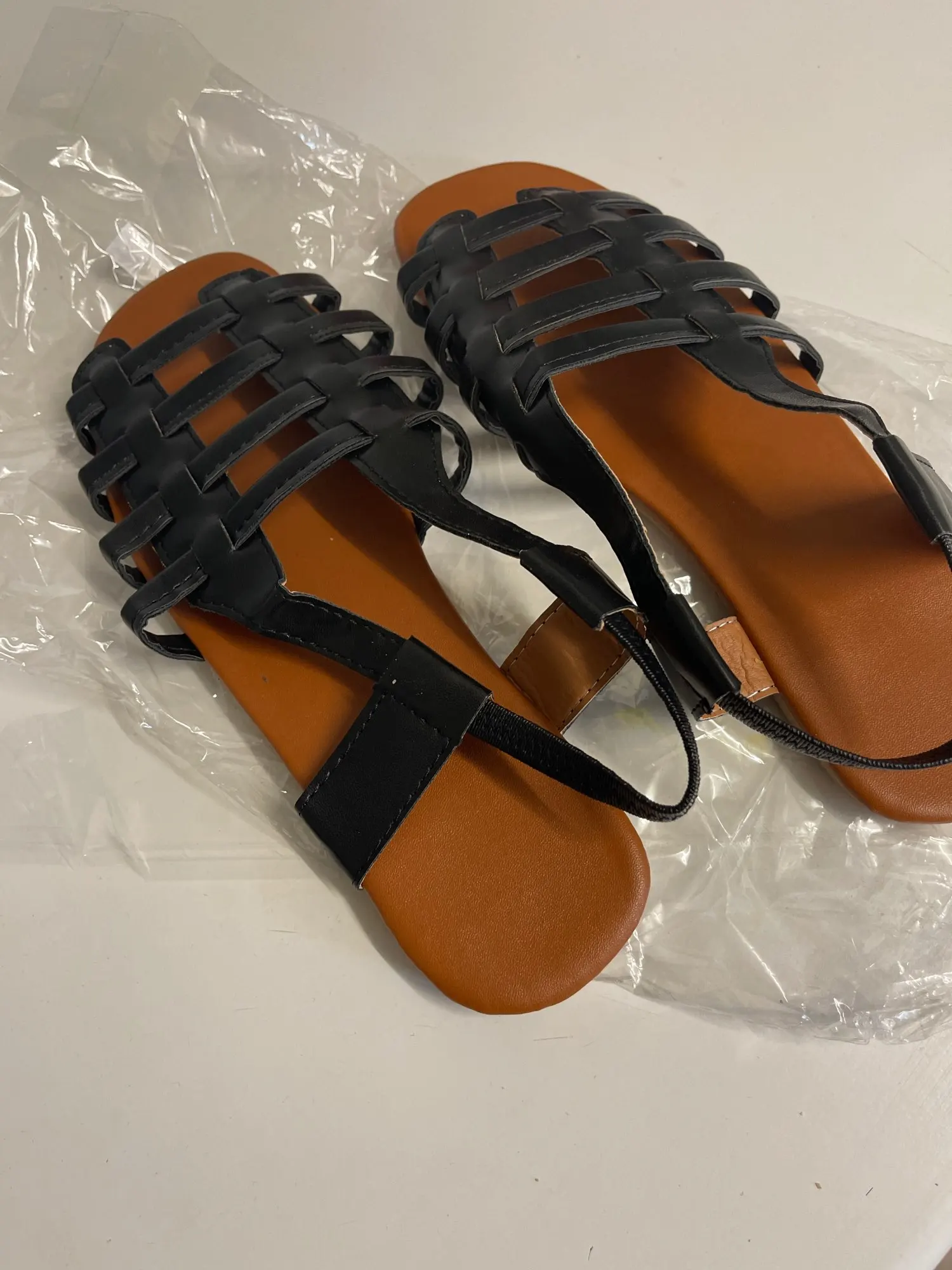 Сандалии на плоской подошве, женские летние уличные модные кожаные туфли на плоской подошве, Элегантные Тапочки с круглым носком, повседневные сандалии с регулируемой пряжкой и ремешком