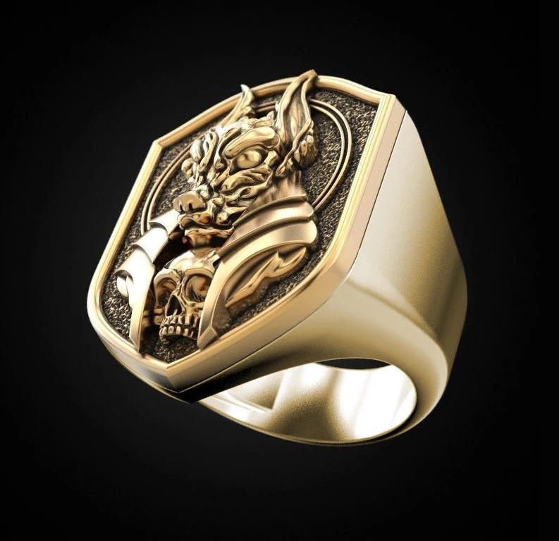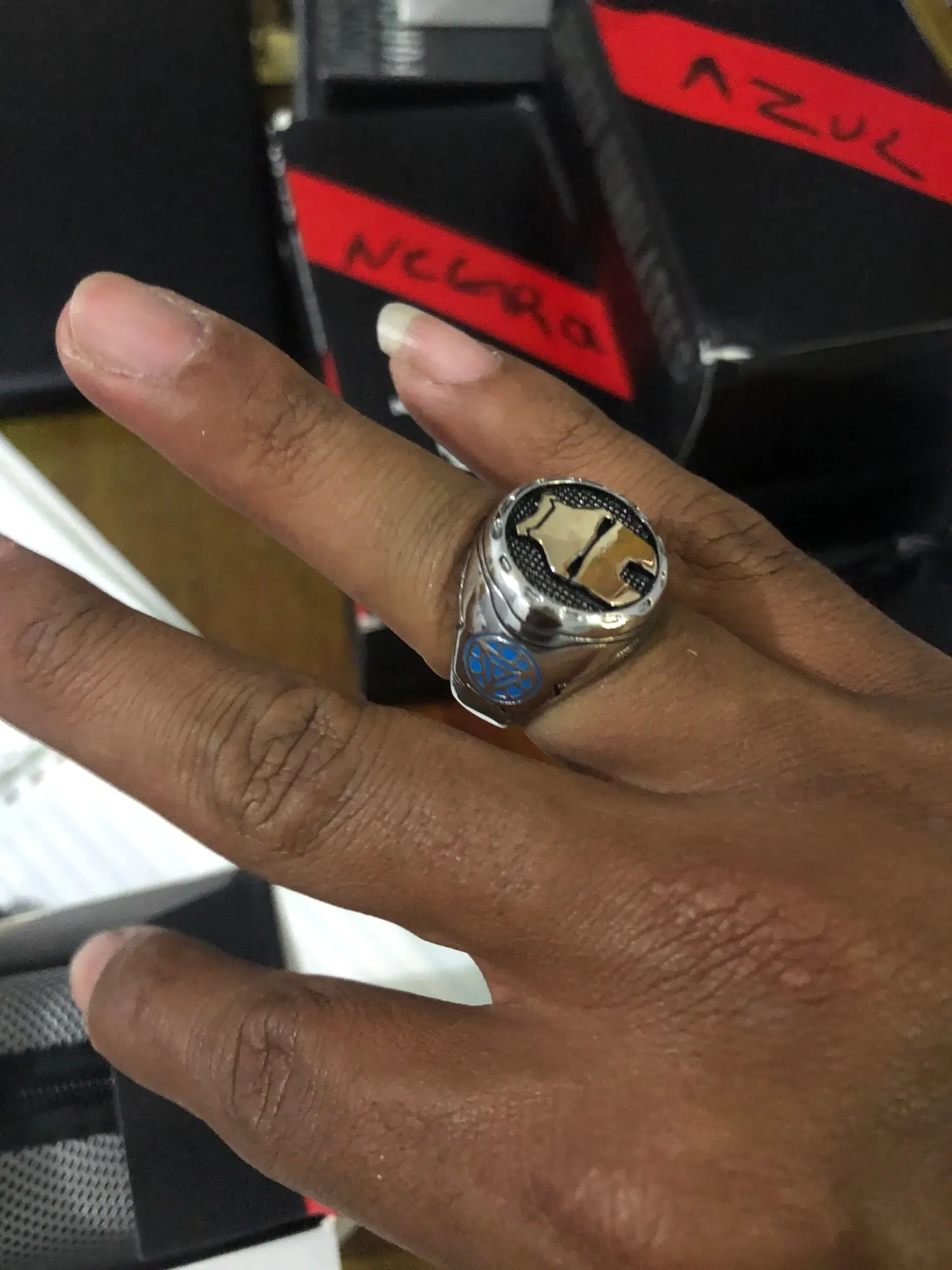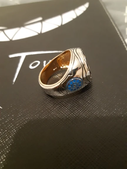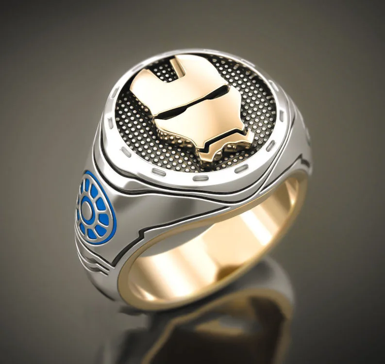 Кольцо поставляется с желаемой отделкой, с маленькой окислительной головкой Железного человека.