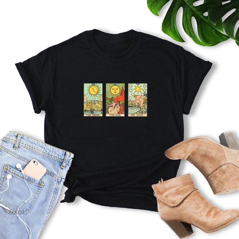 Женская Винтажная футболка с рисунком Таро, Повседневная футболка с коротким рукавом в стиле гранж, летний топ в уличном стиле
