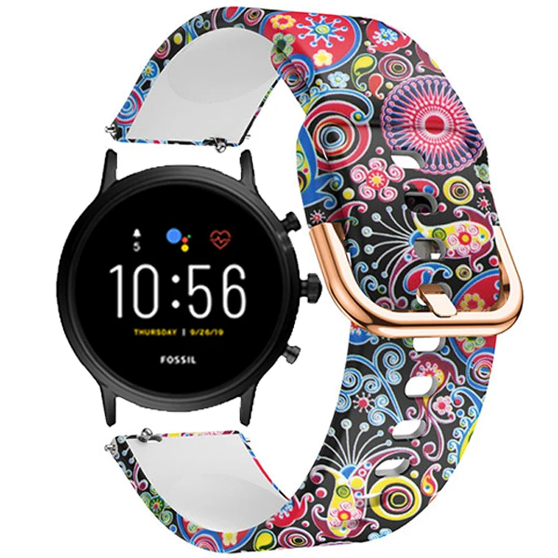 Силиконовый ремешок с принтом для Fossil Gen 5 Carlyle/Julianna, ремешок для умных часов, быстросъемный ремешок для Q Explorist HR Gen 4/3 Correa