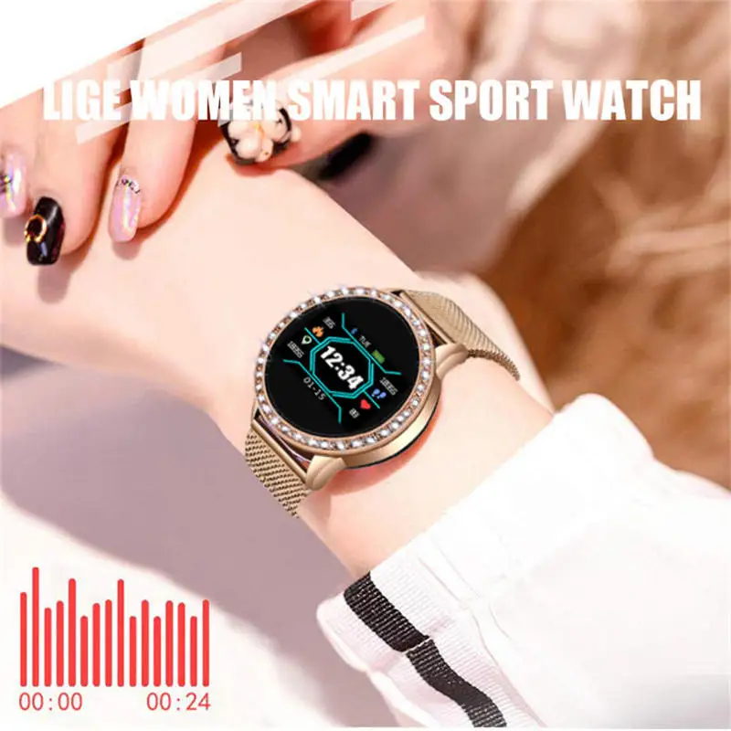 Смарт-часы LIGE Diamond женские, водонепроницаемые умные часы с фит...
